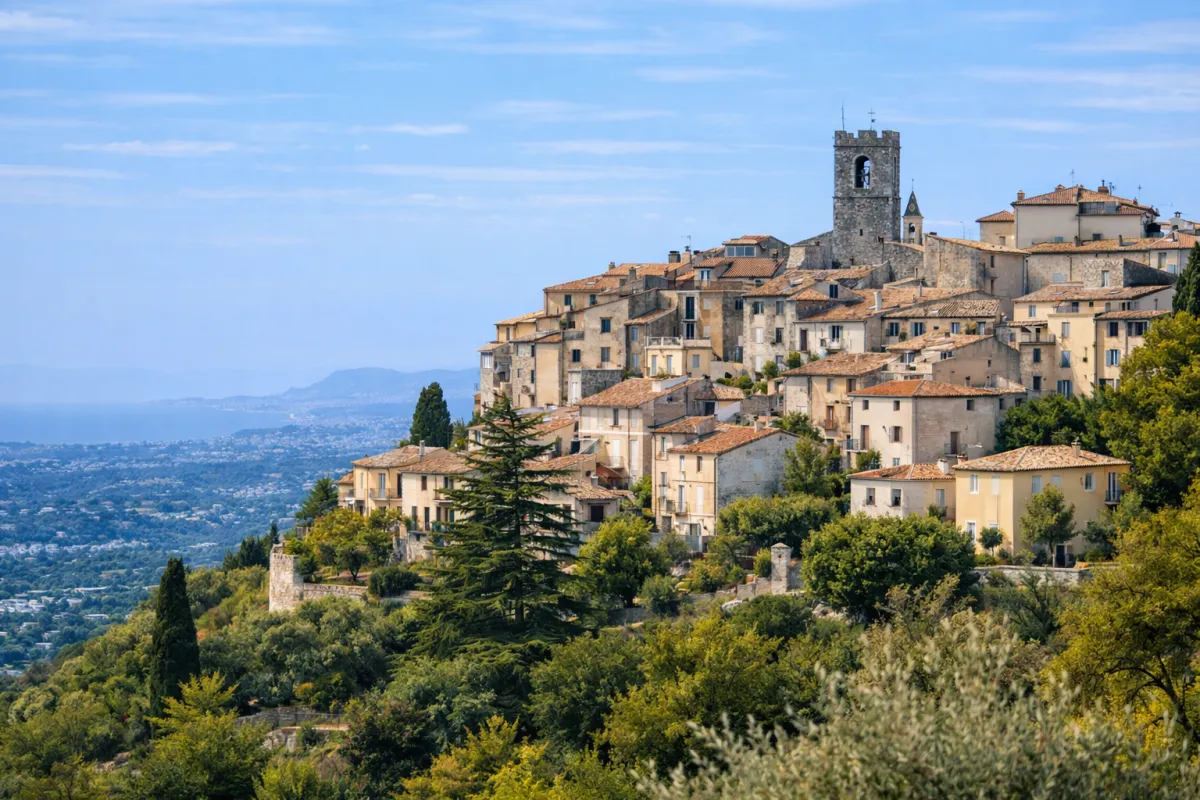 Saint-Jeannet sits high above the Riviera - close enough to see the Mediterranean on a clear day, far enough that the village moves at its own pace entirely. Stone streets, panoramic views across the hills toward the sea, and the particular quiet of a place that hasn't tried to make itself more appealing to anyone.